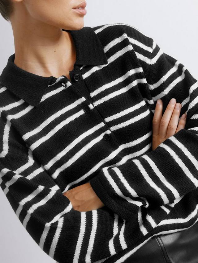 Этот топ представляет собой непринужденную интерпретацию традиционного поло с контрастными полосками, контрастным воротником, длинными рукавами и едва заметной потайной планкой для создания аккуратного вида.
