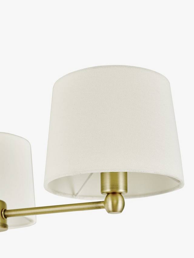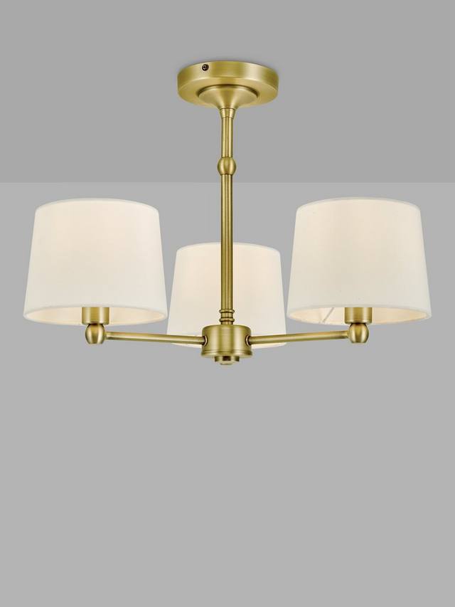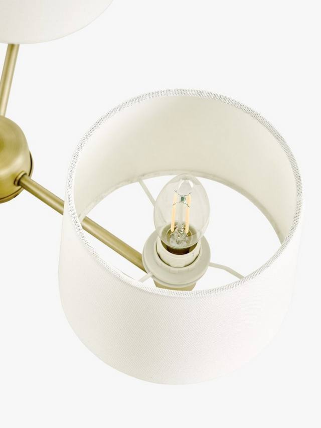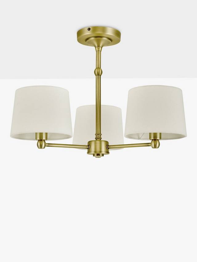 Этот полузакрытый потолочный светильник с традиционным дизайном, который не устареет, станет отличным выбором для помещений с низким потолком. Он имеет три рожка, которые освещают пространство, а абажуры из натурального льна добавляют текстуру, очарование и помогают рассеивать свет. Требуются три светодиодные лампочки.