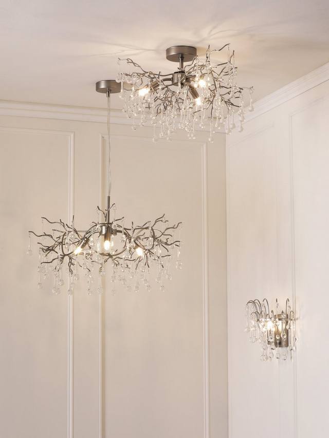 Как не влюбиться в этот великолепный современный потолочный светильник с длинными хрустальными каплями, стекающими с волнистых ветвей ивы? Полувстраиваемый потолочный светильник Willow от Laura Ashley с оловянной отделкой выглядит ярким и красивым. Лампочки в комплект не входят.
