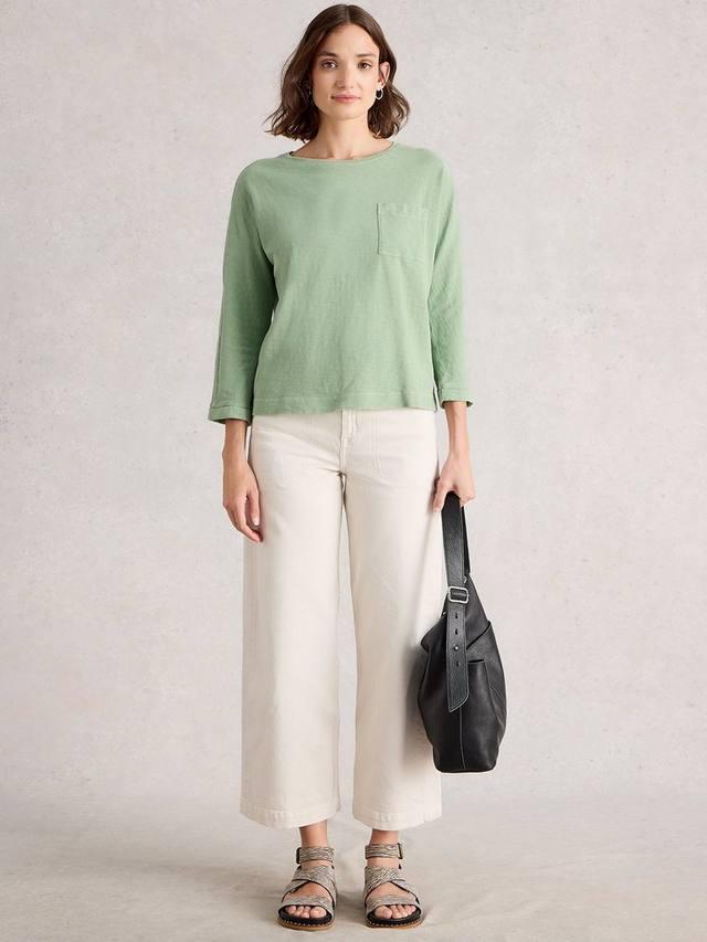 Топ White Stuff из 100% хлопка с вырезом-лодочкой и рукавами три четверти обеспечивает непринужденный комфорт. Этот топ легко комбинировать с другими нарядами, он станет отличным выбором для тех дней, когда оригинальность сочетается с практичностью.