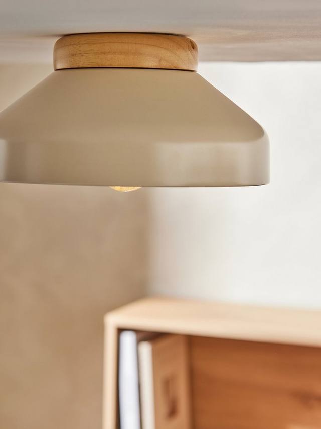 Создайте чистый, лаконичный интерьер с этим потолочным светильником. Минималистичный дизайн в скандинавском стиле с деревянной розеткой. Плавные изгибы светильника создают тёплый поток света в вашем любимом пространстве. Отлично подходит для комнат с низкими потолками.
