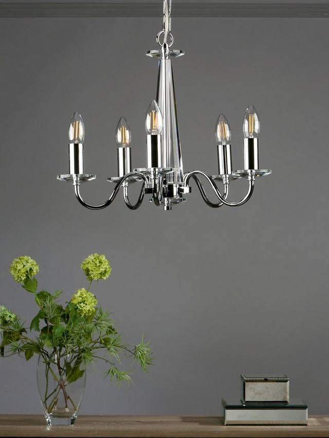 Этот светильник, представляющий собой переосмысление классического потолочного светильника-канделябра, отличается современной роскошью благодаря прозрачному хрустальному цоколю. Для него требуется всего пять светодиодных лампочек, и он будет освещать всю комнату. Кроме того, цепочка регулируется по высоте в месте установки, что позволяет идеально расположить светильник в вашем доме.