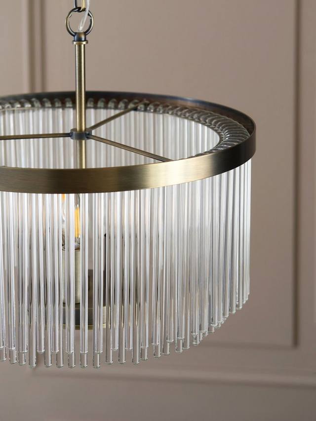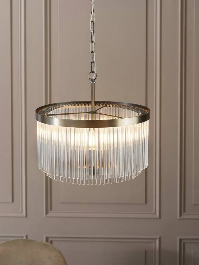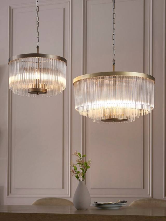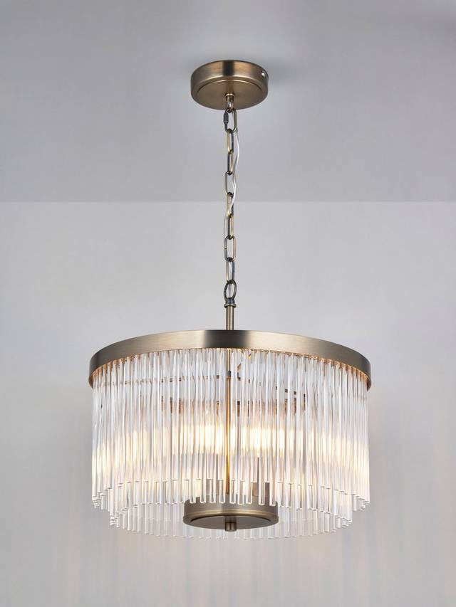Современная роскошь из стекла – люстра Lexton изготовлена из стеклянных прутков ручной работы, которые дают красивый рассеянный свет. Три лампы установлены на цоколе, отделанном современной латунью. Доступна в двух размерах и в комплекте с другими элементами. Цепь регулируется по высоте, а стеклянные элементы легко подвешиваются.