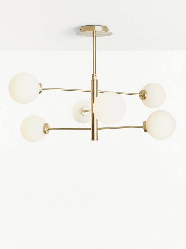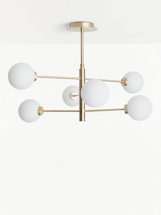 Наш потолочный светильник Parity отличается сбалансированным и ярким дизайном и оснащен шестью стеклянными шарообразными плафонами. Он усиливает рассеянный и атмосферный поток света вокруг вашего пространства и придает выразительный стиль освещения любой комнате.