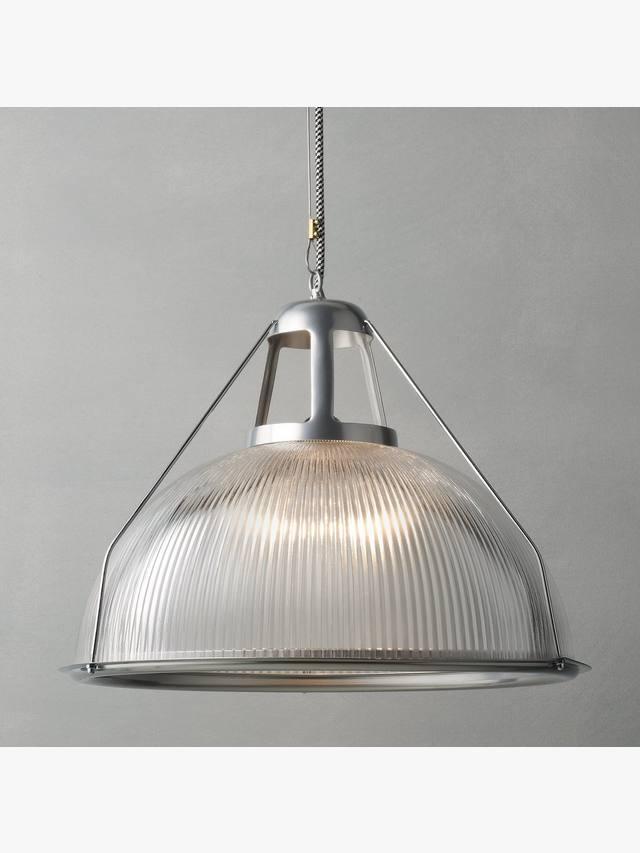 Потолочный светильник Phane изготовлен из ребристого травленого стекла и имеет каркас из матового металла.