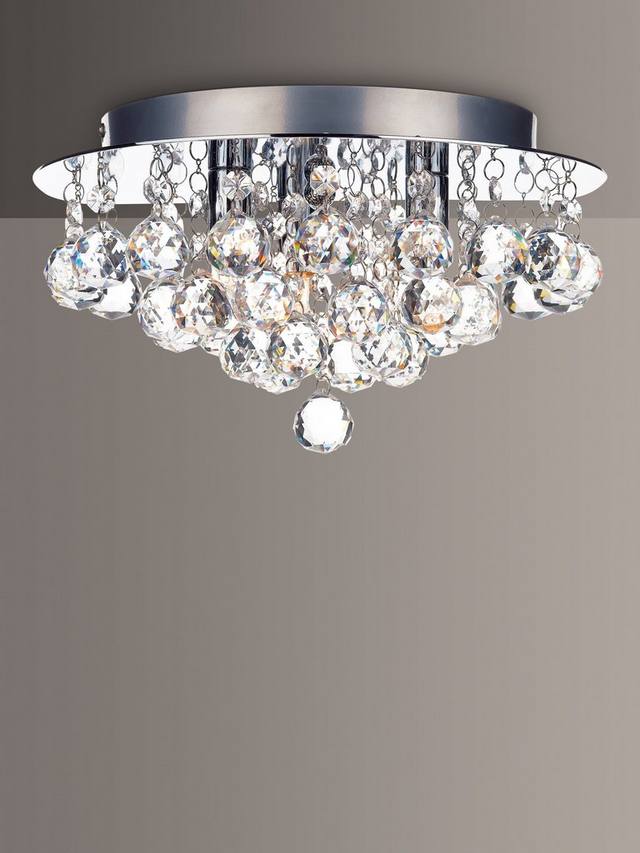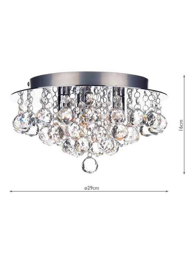 Элегантные кристаллы подвешены на полированном хромированном основании потолочного светильника Pluto от Där. Он расположен вровень с потолком, что удобно для помещений с невысокими потолками. Три лампочки создают много света для вашего пространства.