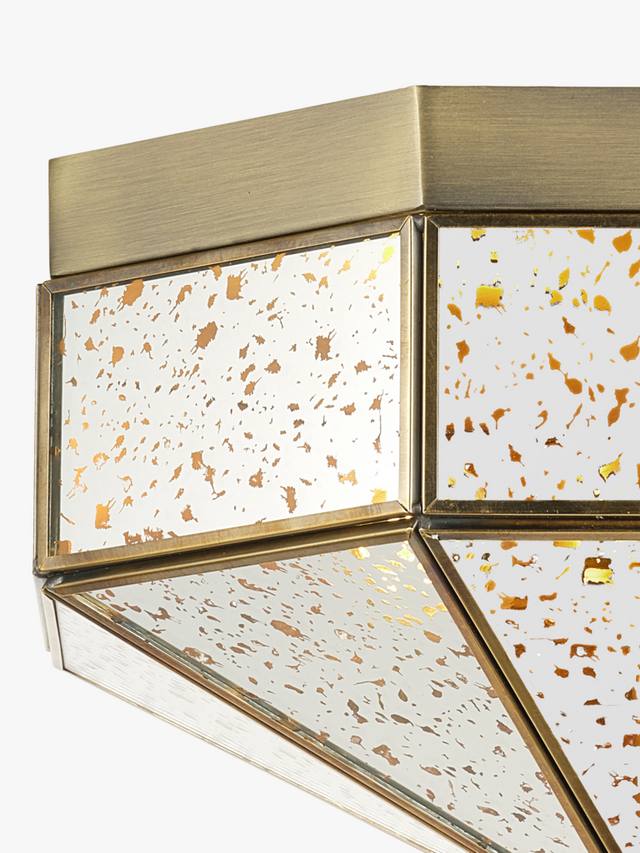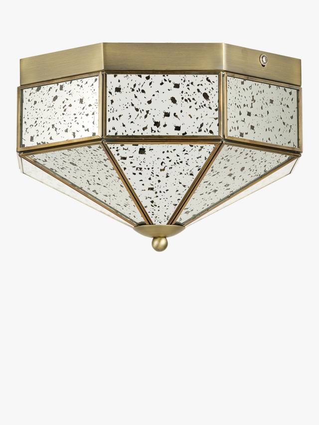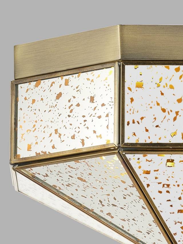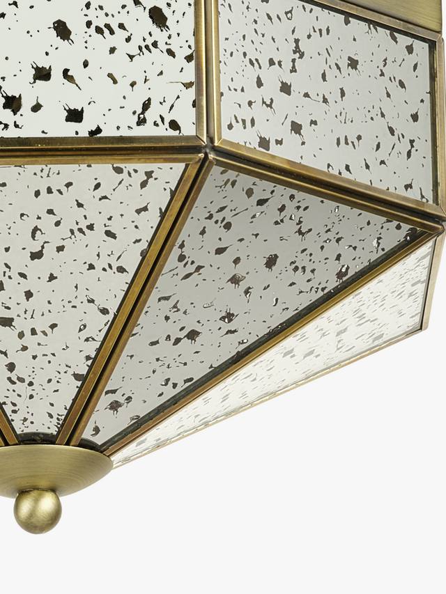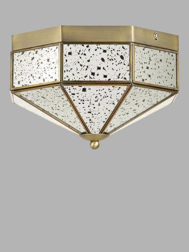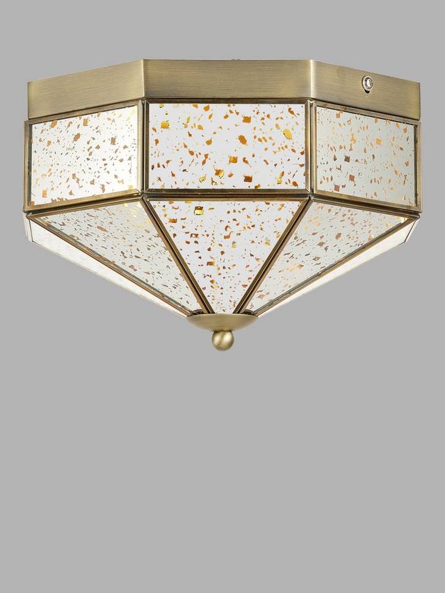 Добавьте в свое пространство нотку винтажной элегантности с этим потолочным светильником с зеркальным стеклом и встроенным в него креплением. Он отличается геометрическим дизайном, зеркальными панелями в античном стиле с крапинками и рамой из старинной латуни. Этот светильник идеально подходит для коридоров, спален, прихожих и гостиных, обеспечивая мягкое, рассеянное свечение и придавая интерьеру стильный вид.