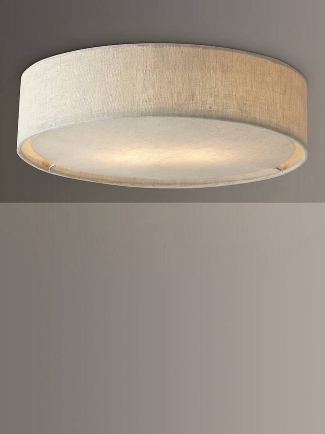 Эта люстра из натурального льна — изысканная альтернатива встроенному светильнику. Она воздушна и гармонична. Матовый рассеиватель создаёт мягкое освещение. Идеально подходит для комнат с низкими потолками.