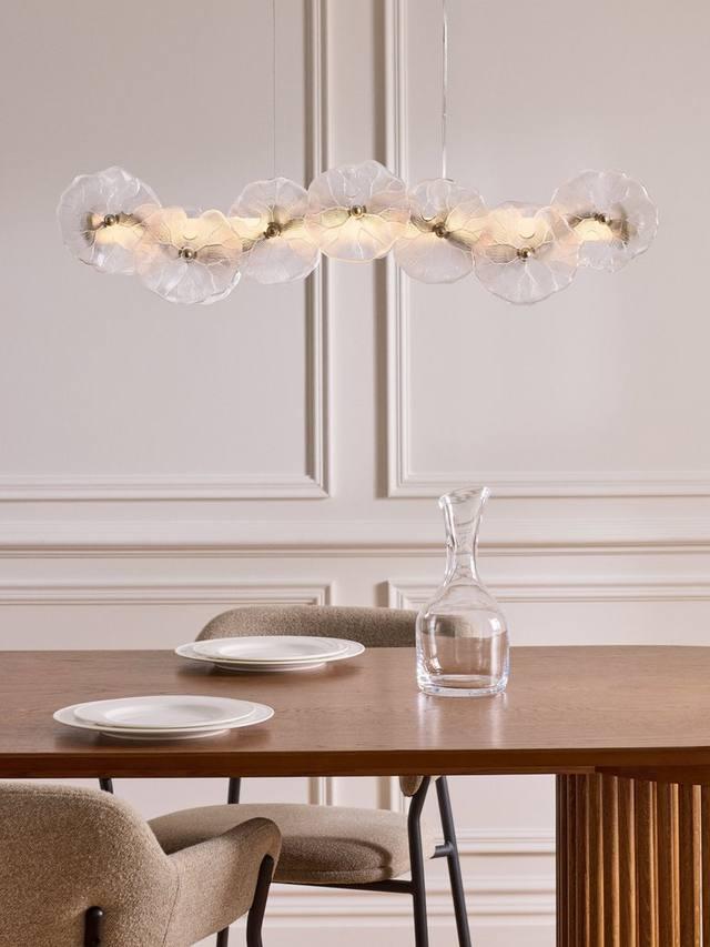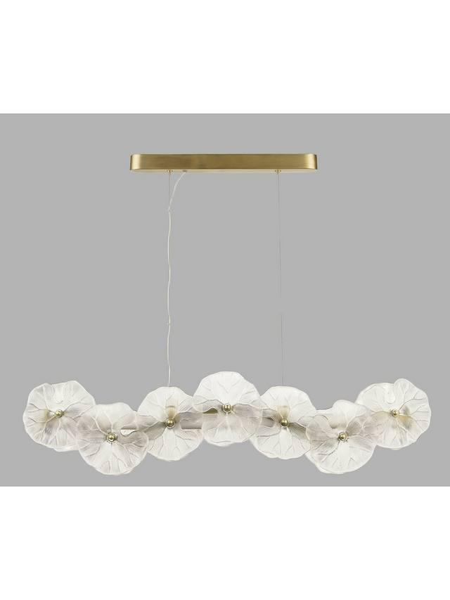 Эта люстра, отделанная античной латунью и украшенная потрясающе детализированным узором из матового стекла, несомненно, станет потрясающим центром внимания в вашем доме. Излучая теплое и притягательное свечение, этот подвесной светильник по-настоящему оживает, когда его освещают.
