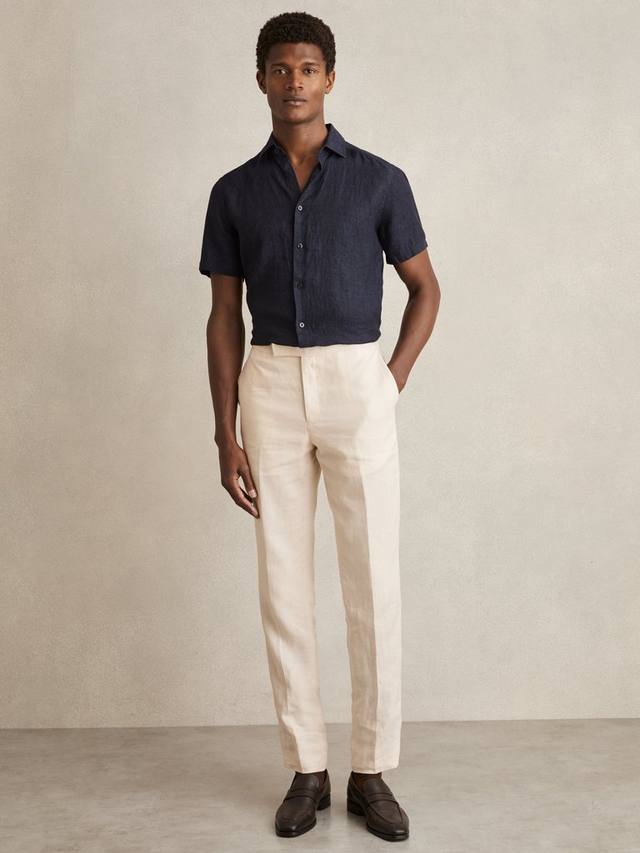 Эта льняная рубашка от Reiss, искусно скрученная для создания легкого и прохладного ощущения, не вызывает никаких проблем и имеет свободный крой.
