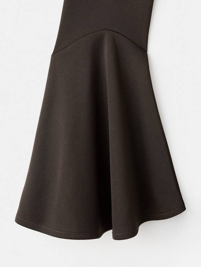 Приталенное платье миди с рюшами, длинными расклешенными рукавами, высоким воротом и оборками по бокам обеспечит вам комфорт в течение всего дня. Идеально подходит для повседневных образов, когда вы хотите выглядеть стильно и чувствовать себя непринужденно.