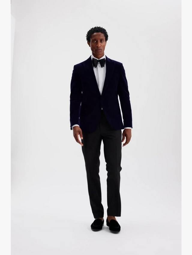 Пиджак Moss чернильного оттенка, представляющий собой более непринужденный подход к формальности, идеально подходит для создания непринужденного образа, но при этом соблюдающего все правила. Бархатная ткань задает тон всему сезону, а облегающий крой создает четкие линии, которые вам обязательно понравятся.