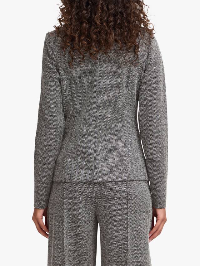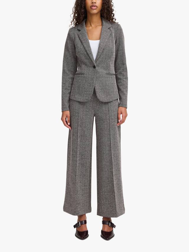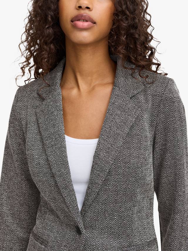 Этот элегантный многослойный предмет одежды для торжественных случаев — однобортный блейзер от ICHI — выполнен из мягкой смесовой ткани с жаккардовым узором елочка.