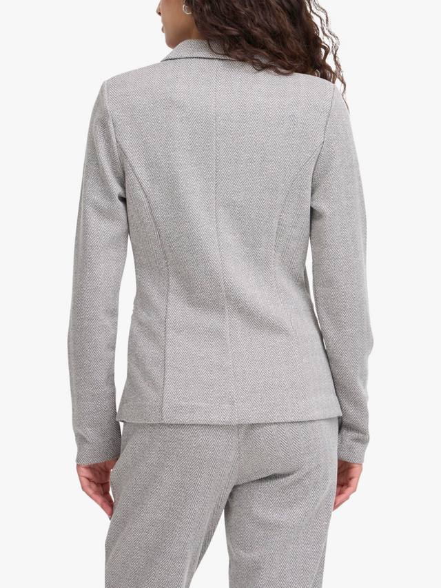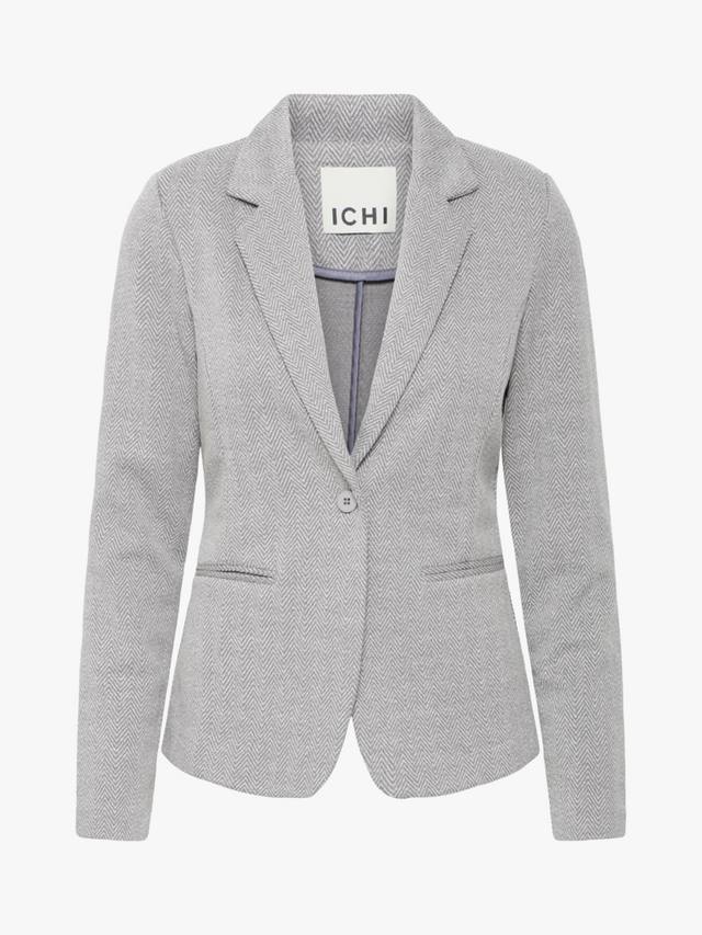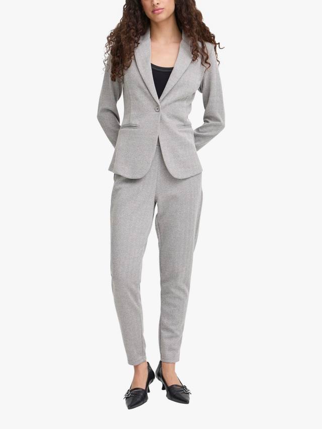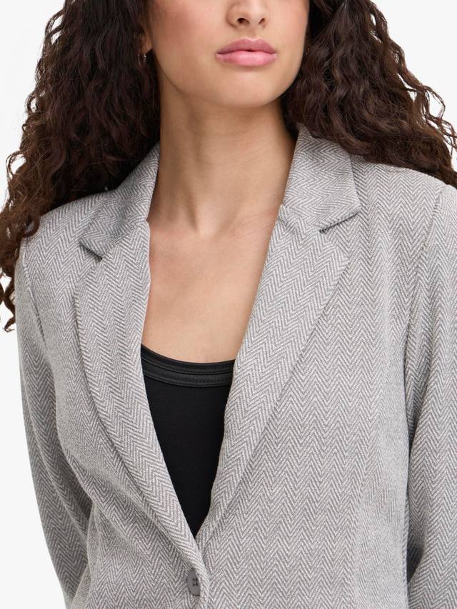 Этот элегантный многослойный предмет одежды для торжественных случаев — однобортный блейзер от ICHI — выполнен из мягкой смесовой ткани с жаккардовым узором елочка.