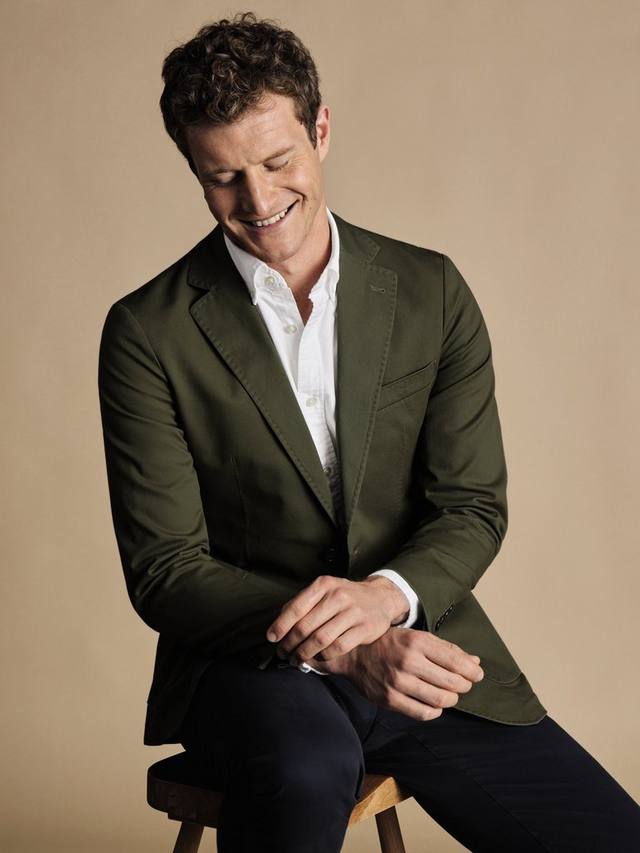 Стройнящий блейзер из хлопковой смеси с эластаном Charles Tyrwhitt, Olive