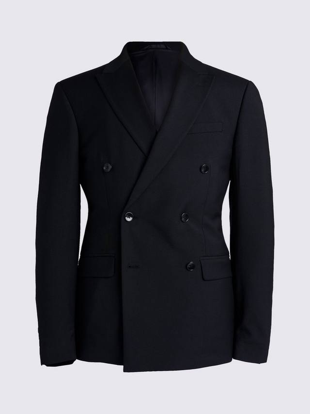 Стройный приталенный двубортный стрейч-пиджак Moss, Black