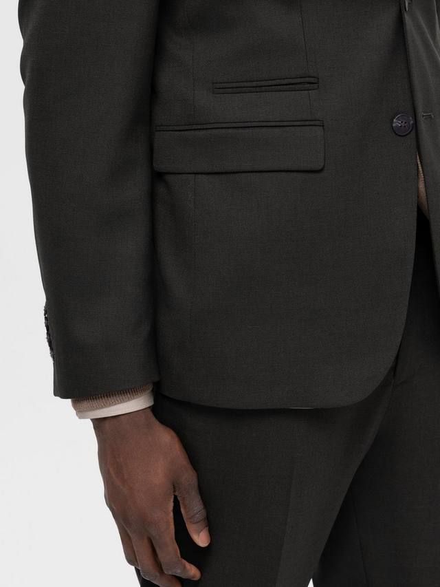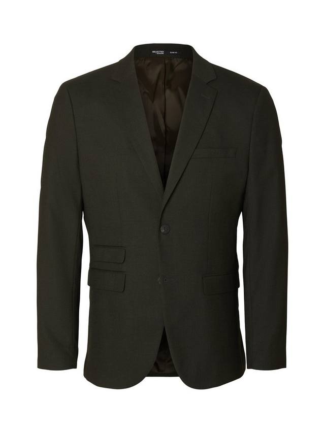 Однобортный пиджак облегающего кроя с классической застежкой на две пуговицы и манжетами на пуговицах. Подкладка, двойной разрез сзади, лацкан с лацканами, два прорезных кармана с клапанами и карман для монет. Дополните образ подходящими брюками.