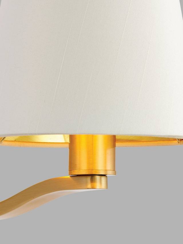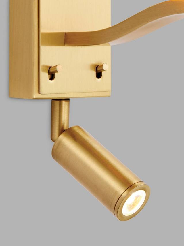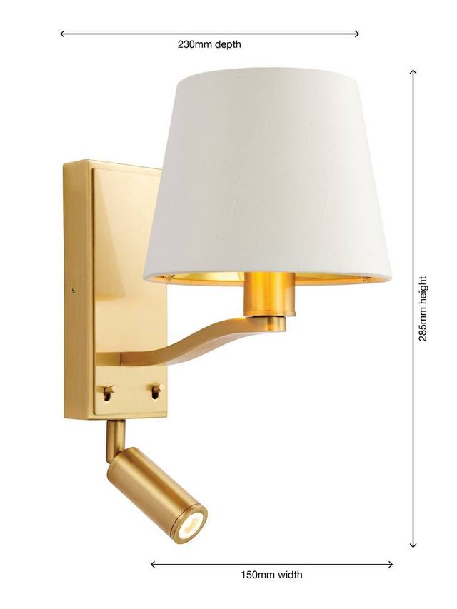Этот продуманный настенный светильник два в одном сочетает в себе традиционный однорожковый светильник и точечный светильник для чтения со встроенным светодиодом. Он станет отличным выбором для спальни или гостиной. Он изготовлен из прочного металла с сатинированной отделкой и оснащен удобными переключателями для управления каждой лампой. На настенном светильнике из искусственного шелка закреплен конический абажур в форме барабана. Этот светильник идеально подойдет для создания изысканного интерьера в стиле бутик-отеля. Вам понадобится лампочка для однорычажного светильника, но точечный светильник для чтения встроен.