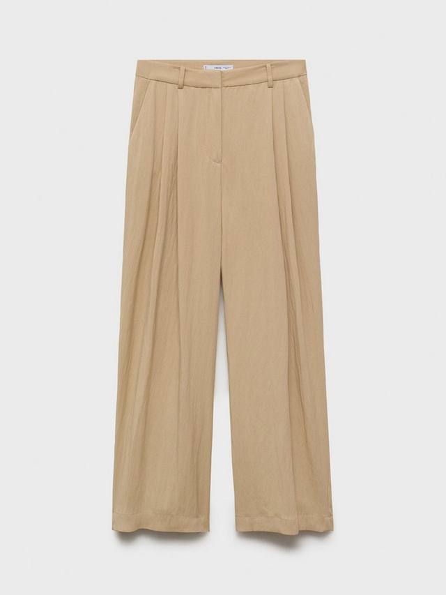 Пара идеально свободных, идеально свободных брюк широкого кроя от Mango. Изготовлены из лиоцелла, имеют среднюю посадку и стандартную длину низа.