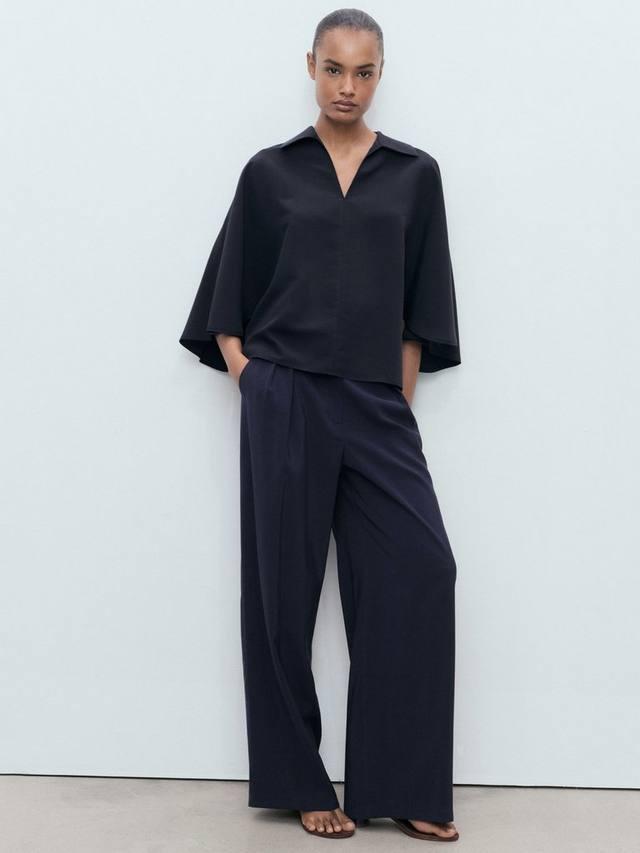 Пара брюк прямого кроя от Mango. Средняя посадка, застежка на молнию, стандартная длина низа.