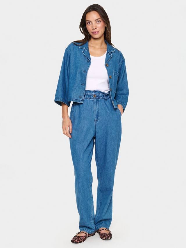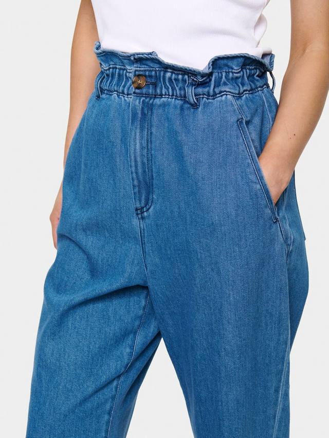 Эти джинсы с высокой талией и оборками из Сен-Тропе имеют слегка преувеличенно прямой силуэт и стандартный зауженный книзу подол. Благодаря возможности комбинировать и сочетать, эта пара невероятно универсальна.