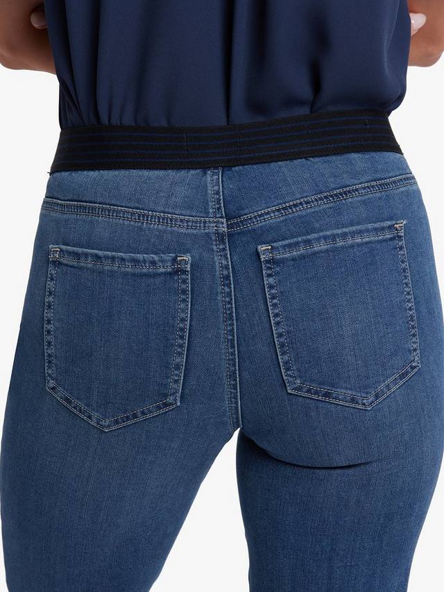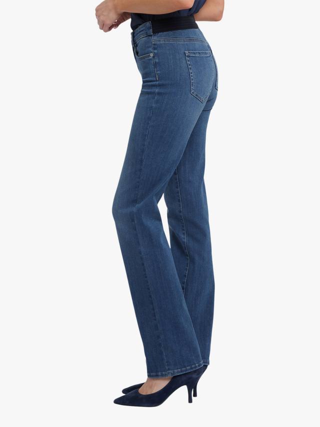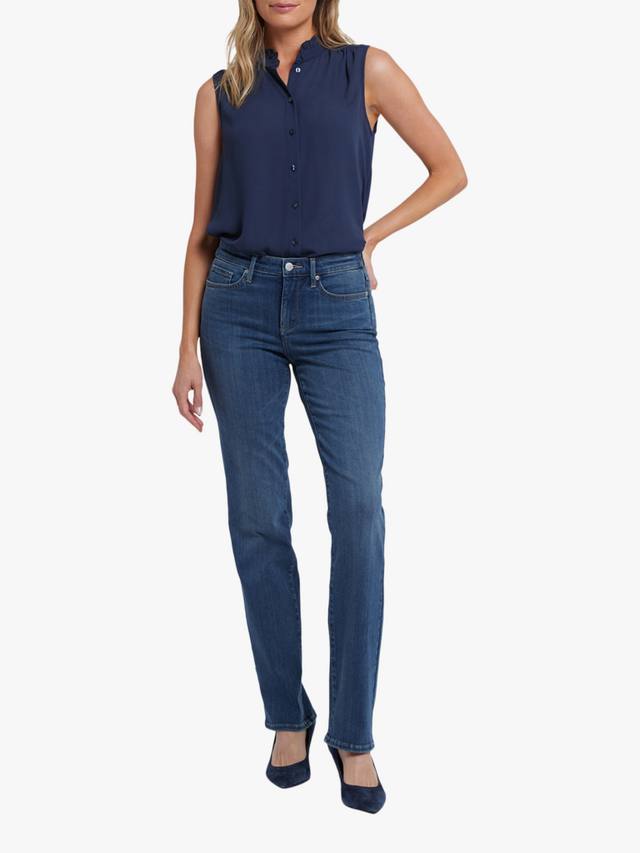 Прощай, зазор сзади! Прямые джинсы No Gapper Marilyn от NYDJ сочетают в себе поддерживающую технологию Lift Tuck и пояс, подчеркивающий фигуру, который устраняет зазор сзади и подчёркивает вашу естественную талию. Эластичный пояс сзади имеет полосатый дизайн и приятную атласную отделку. Для дополнительного комфорта джинсы изготовлены из нашего супермягкого денима Sure Stretch, который тянется и движется вместе с вами, не растягиваясь. Отличается нашим самым продаваемым кроем от колена до подола, классическим дизайном с пятью карманами, застежкой на молнию и пуговицы.