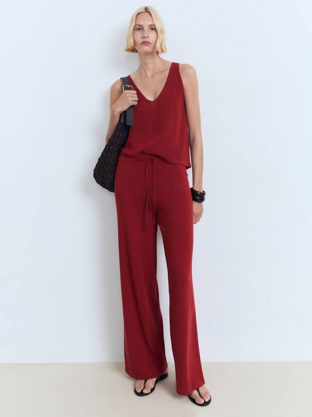 Пара прямых брюк от Mango, которые естественно сидят на бедрах и связаны тонкой вязкой из воздушной льняной смеси.