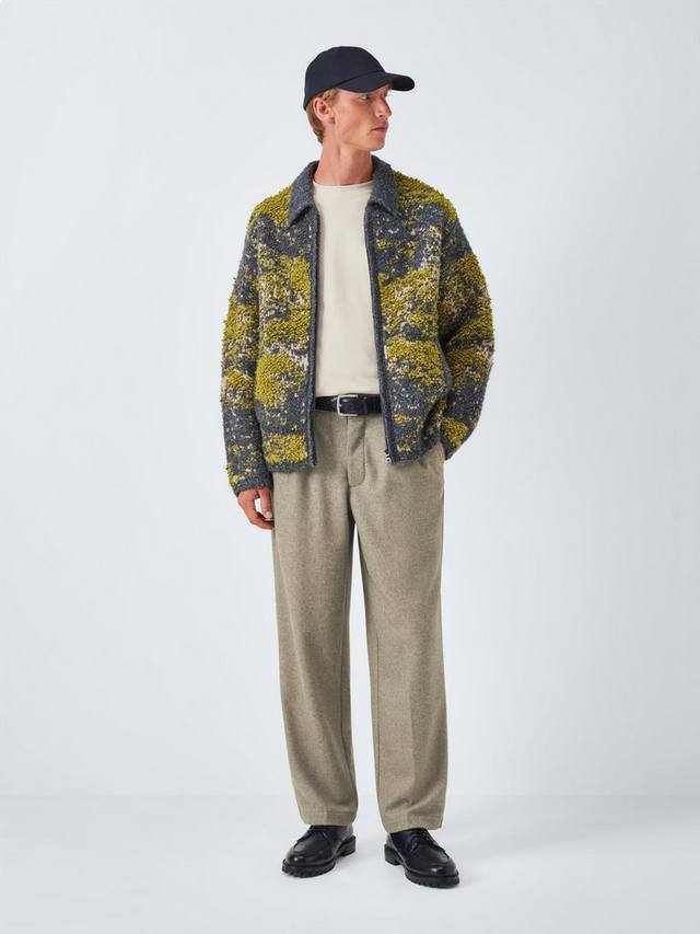 Прямые фланелевые брюки с двойными складками, двумя боковыми карманами, двумя задними карманами и стандартными шлевками для ремня.