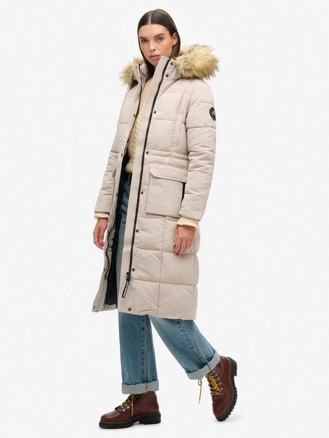 - Стеганый дизайн с капюшоном на подкладке из искусственного меха и регулируемым шнуром-резинкой