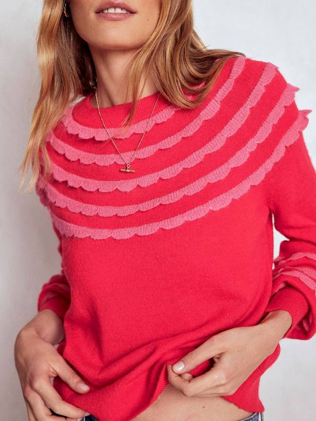 Этот изящный свитер с круглым вырезом от Boden выполнен из теплой смесовой ткани, в полоску и с красивой пушистой текстурой.