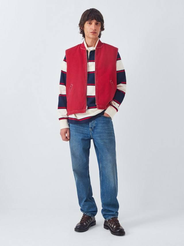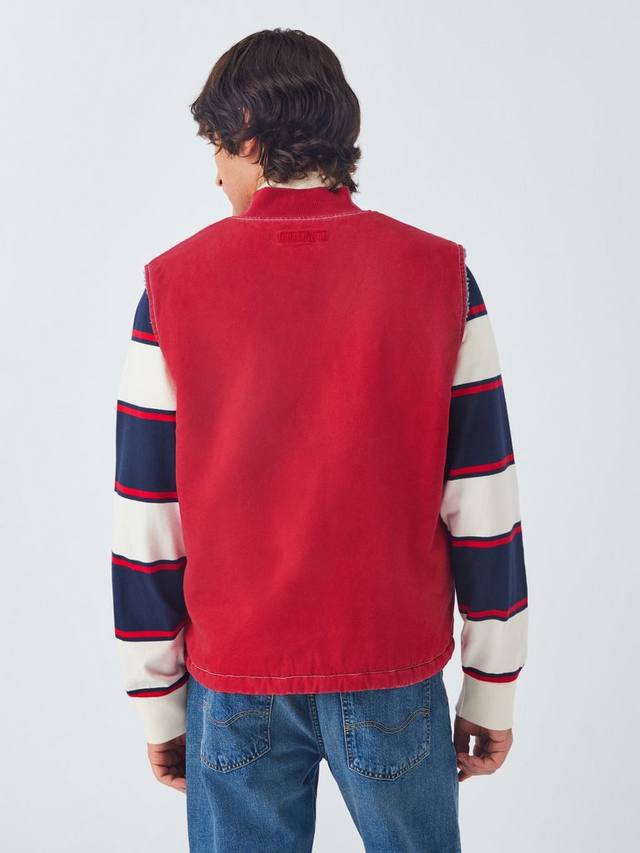 Этот жилет, постиранный в готовом виде, выглядит и ощущается как поношенный, вдохновлен износостойкой зимней экипировкой железнодорожников 1950-х и 60-х годов. Его полусвободный крой и отсутствие рукавов делают его идеальным для ношения поверх толстовок, фланели или термобелья.
