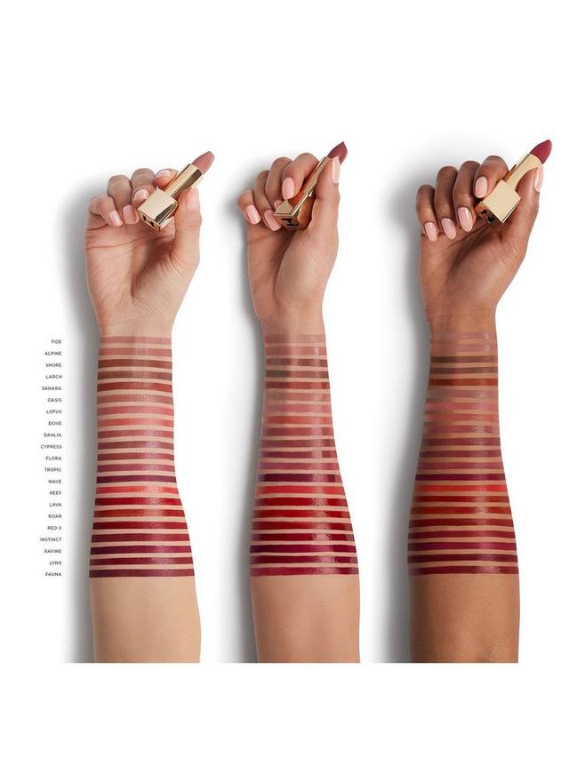 Эта помада содержит инновационные веганские воски для гладкой текстуры, которая легко наносится на губы. Ухаживающая формула с маслом косточек манго, маслом авокадо и маслом арганы делает губы более мягкими и гладкими, обеспечивая комфортную стойкость.