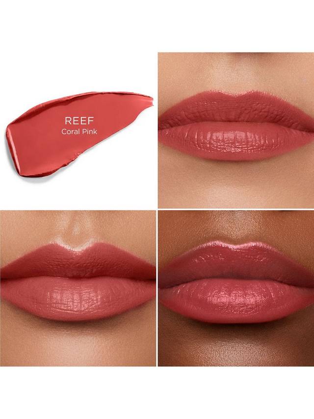Эта помада содержит инновационные веганские воски для гладкой текстуры, которая легко наносится на губы. Ухаживающая формула с маслом косточек манго, маслом авокадо и маслом арганы делает губы более мягкими и гладкими, обеспечивая комфортную стойкость.