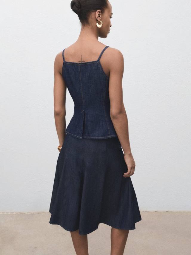 Повседневный комфорт с джинсовой юбкой длиной до колена от Mango. Юбка выполнена из хлопковой смеси, обеспечивает комфорт в течение всего дня и выглядит стильно на работе, встречах или в те моменты, когда хочется простоты и комфорта.