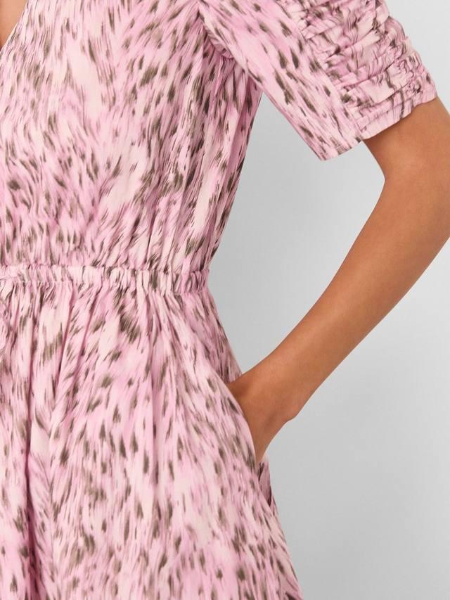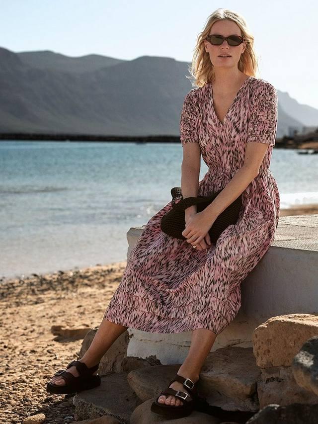 Приталенное и расклешенное платье миди от Whistles привлекает внимание своим абстрактным анималистичным принтом, продуманным V-образным вырезом и короткими рукавами. Платье, тщательно изготовленное из мягкого 100% хлопка, обеспечит комфорт и удовольствие благодаря регулируемой талии на шнурке.