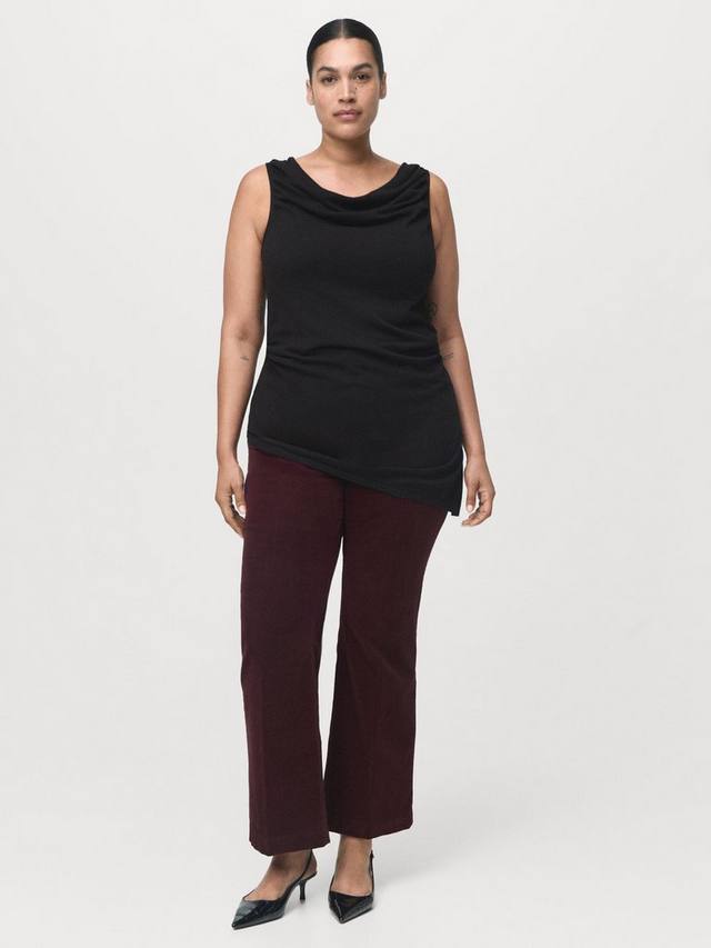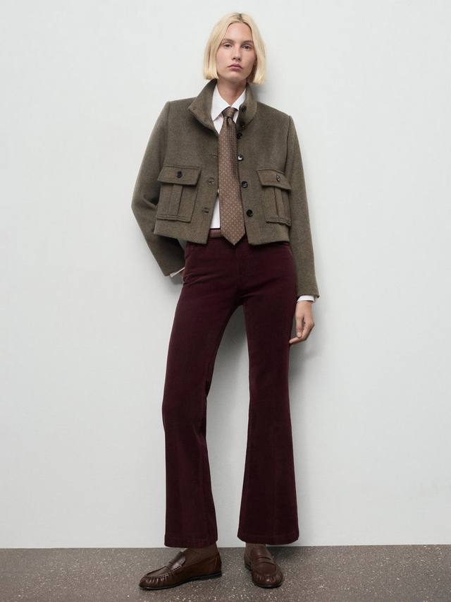 Расклешенные вельветовые джинсы от Mango. Изготовлены из эластичной хлопковой ткани со средней посадкой и классической застежкой на молнию и пуговицы. Длина стандартная.