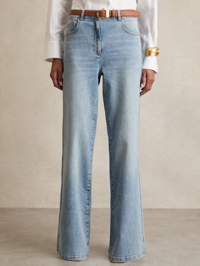 Джинсы-клеш от Reiss с облегающим верхом и увеличенным объёмом в области брючин. Джинсы выполнены из денима со средней посадкой и классической застёжкой-молнией. Длина брюк стандартная.