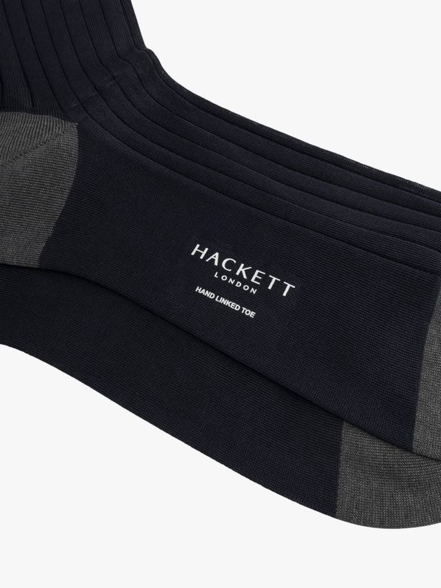 Эти носки от Hackett London изготовлены из 100% мерсеризованного хлопка с ребристой текстурой и контрастным цветом пятки и носка. Они украшены логотипом бренда на арке.