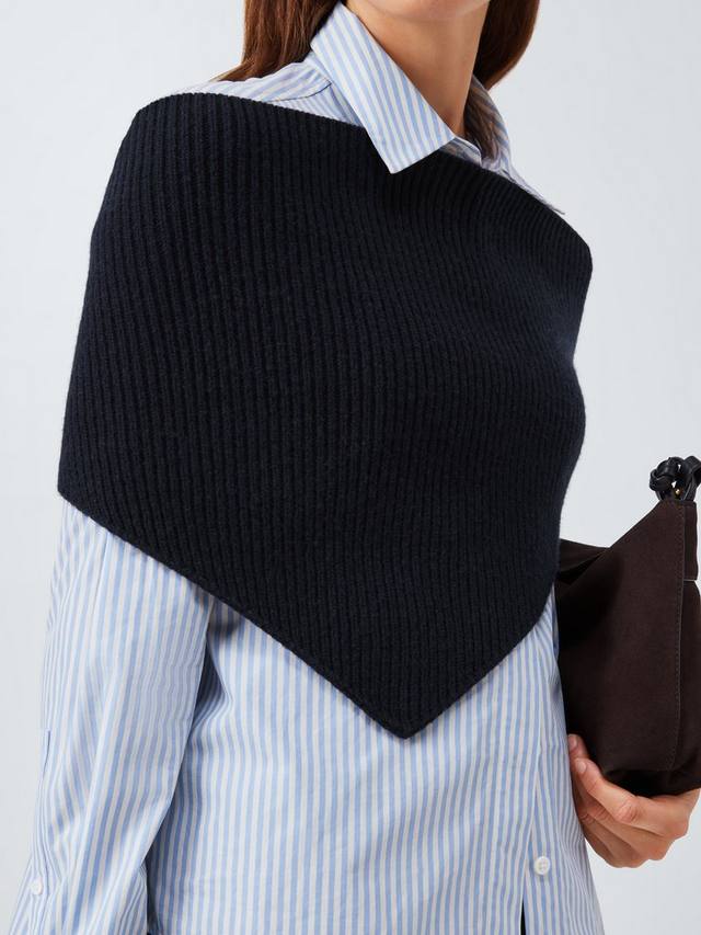 Шейный шарф с ребристой текстурой, изготовленный из смеси шерсти и полиамида для тепла и мягкости.