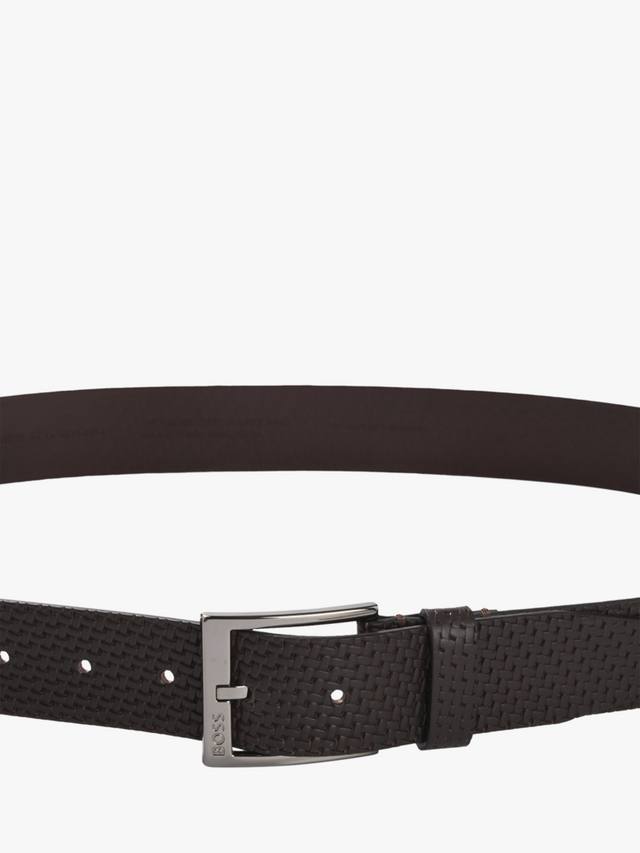 Этот ремень BOSS Menswear с пряжкой с гравировкой логотипа подходит как для повседневных, так и для деловых образов. Ширина ремня — 3,5 см, выполнен из богато текстурированной плетеной кожи.