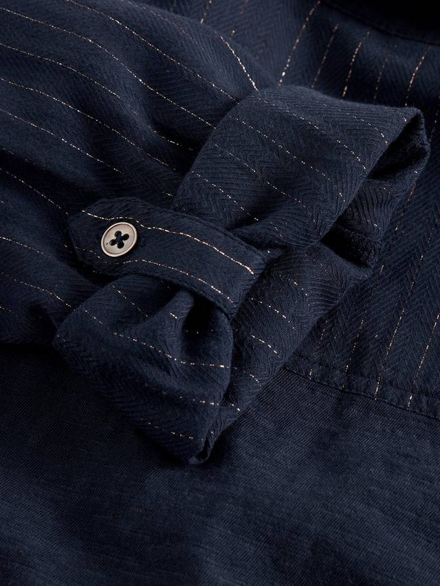 Блузка-рубашка White Stuff из органического хлопка. V-образный вырез, длинные рукава и полоски из металлизированной нити. Идеально подходит для повседневной носки.