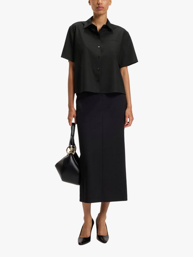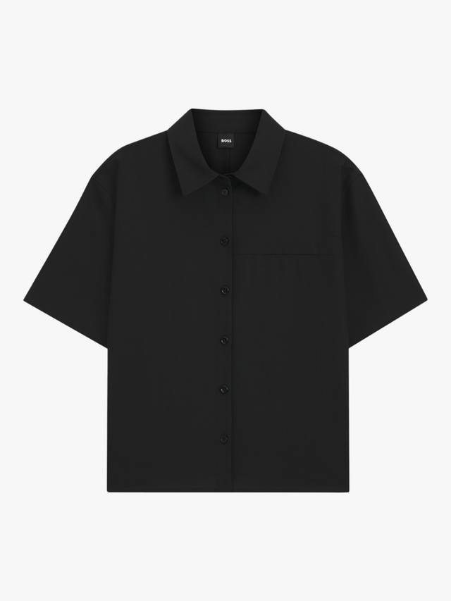 Простая рубашка свободного кроя от BOSS, сотканная из чистой шерсти. С воротником-стойкой и короткими рукавами, она представлена в однотонной расцветке, которую легко подобрать. Вы будете носить её снова и снова.