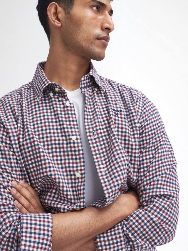 Рубашка Barbour Finkle из 100% хлопка – мягкий и стильный вариант как для деловых, так и для повседневных случаев. Эта модель украшена классическим рисунком в клетку гингем и фирменной вышивкой. Носите отдельно или под трикотажем в холодное время года.