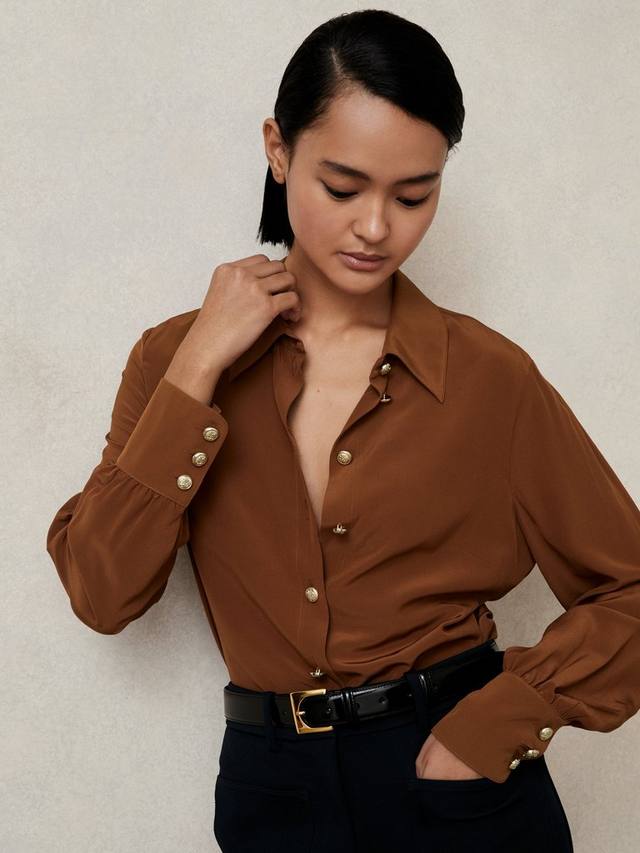 Эта шёлковая рубашка приятна к телу и выглядит стильно в любой обстановке. Носите её на встречах или ужинах, когда хотите чувствовать себя уверенно, комфортно и немного отличаться от остальных.