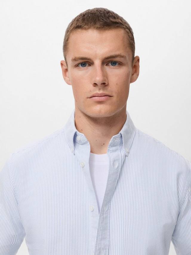 Эта хлопковая рубашка от Mango с ярким полосатым принтом и классическим кроем идеально подойдет для элегантных повседневных дней в компании друзей.