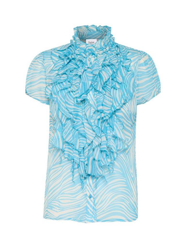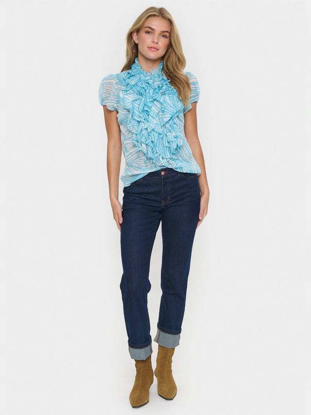 Блузка Lilja — женственная рубашка с множеством деталей, которую можно носить в любой ситуации. Она имеет несколько слоев оборок, ниспадающих каскадом по переду, и короткие рукава-фонарики с окантовкой. Блузка имеет высокий воротник-стойку с двумя слоями оборок. Она застегивается на пуговицы по всему переду и имеет классический крой.