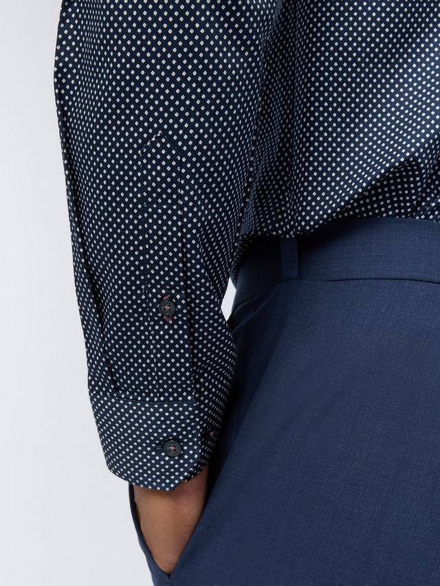Эта рубашка с классическим отложным воротником и регулируемыми манжетами выполнена преимущественно из мягкого хлопка с добавлением эластичной ткани. Микропринт делает эту рубашку привлекательной альтернативой более распространённому блочному стилю.