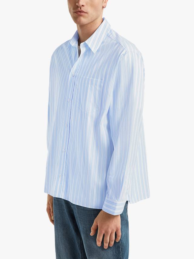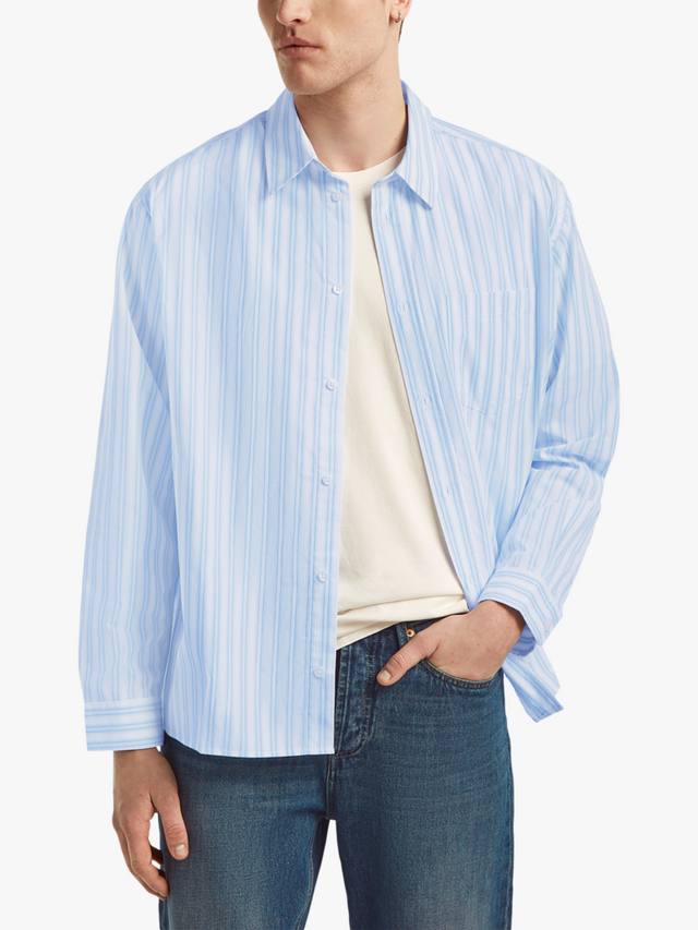 Рубашка Noah изготовлена в Португалии из роскошного органического хлопка плотностью 130 г/м² с полосатым узором и классическим кроем.