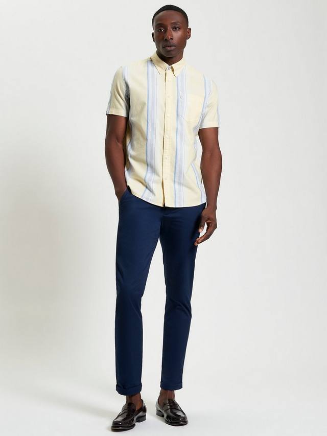 Эта рубашка в полоску с короткими рукавами, закругленным подолом и воротником на двух пуговицах. Рубашка классического кроя из 100% хлопка дополнена фирменной тканой этикеткой Ben Sherman на нагрудном кармане.