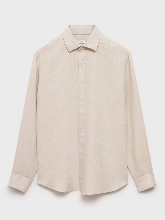 Эта рубашка от Mango, сшитая из легкого льна, идеально подходит для стильного ношения в теплые месяцы, имеет свободный классический крой.